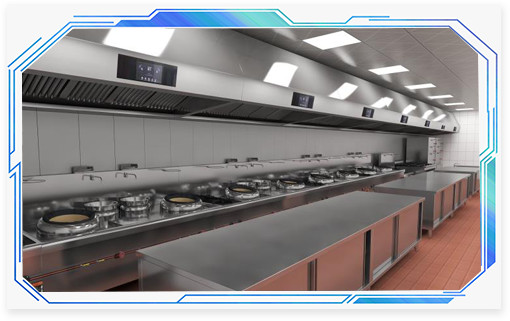 北京西平莊百姓大食堂為了支持響應(yīng)國家“藍天保衛(wèi)戰(zhàn)”政策,整個大食堂都采用的這種壹指藍環(huán)保油煙機設(shè)備,不僅不用向外部排放油煙,還給廚房人員更好的工作環(huán)境,更健康的身體。